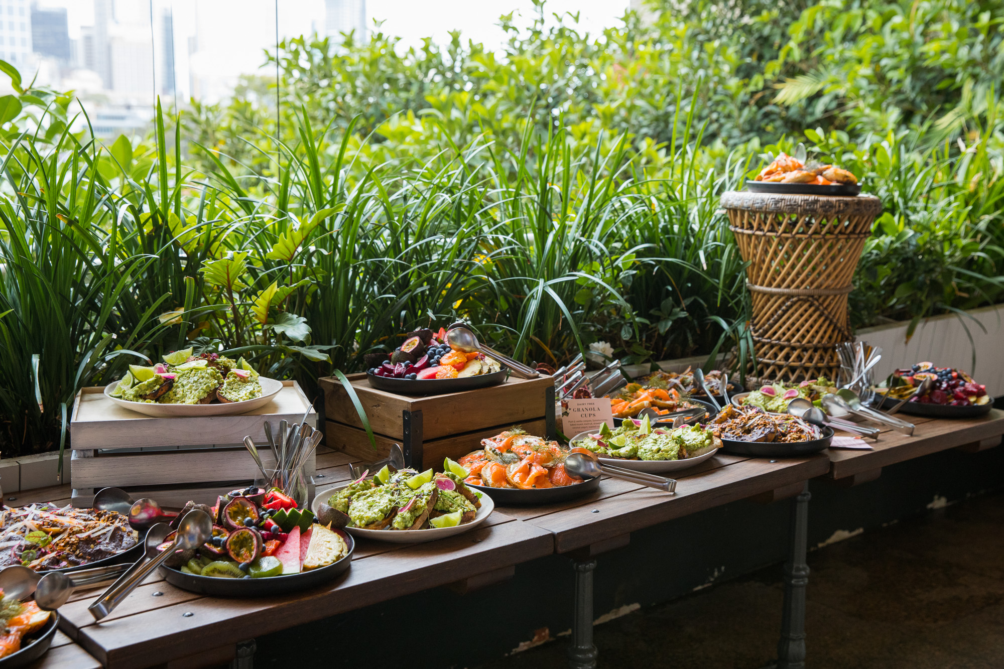 The morning began with a wholesome brunch grazing station overlooking the spectacular view on our terrace. The brunch was prepared by our Head Chef, Amber Doig, and incorporated her delectable and creative Ibero-American flavours. Plates were piled with fresh fruit, jalapeño smashed avocado on sourdough, smoked salmon bagels, black bean bagels and granola pots.